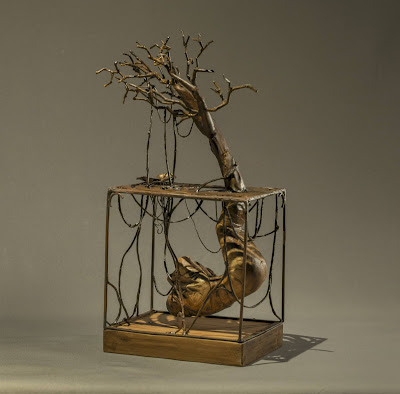 Bulbotalla en algarrobo y hierro soldado y patinad...